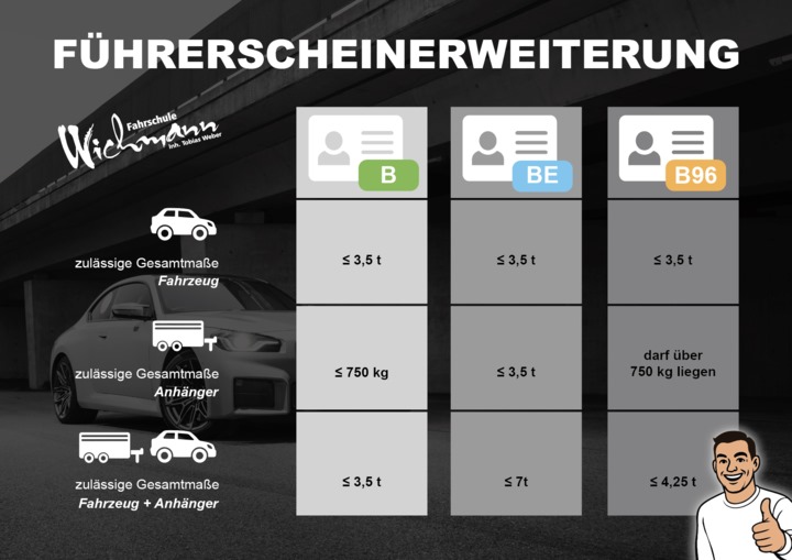 - B96 - Erweiterung für Anhängerkombinationen bis 4,25t zGm – ohne Prüfung z.B. Wohnwagen